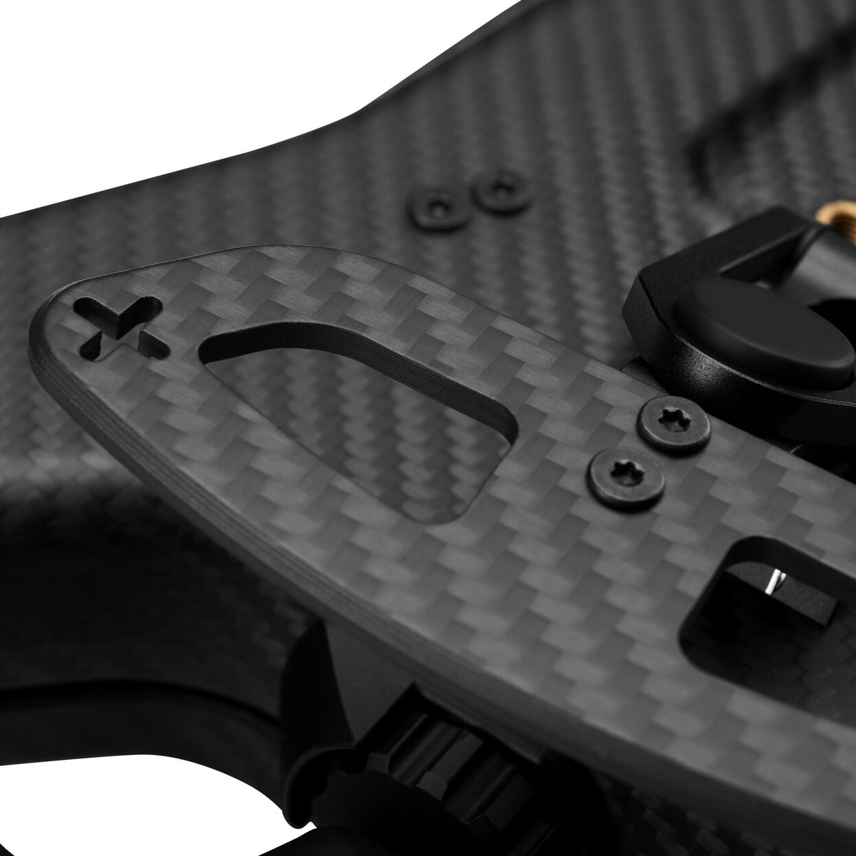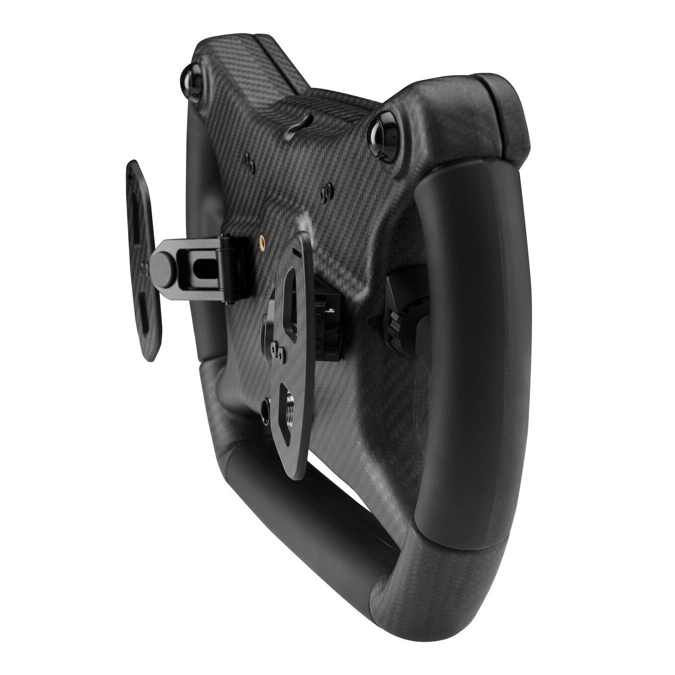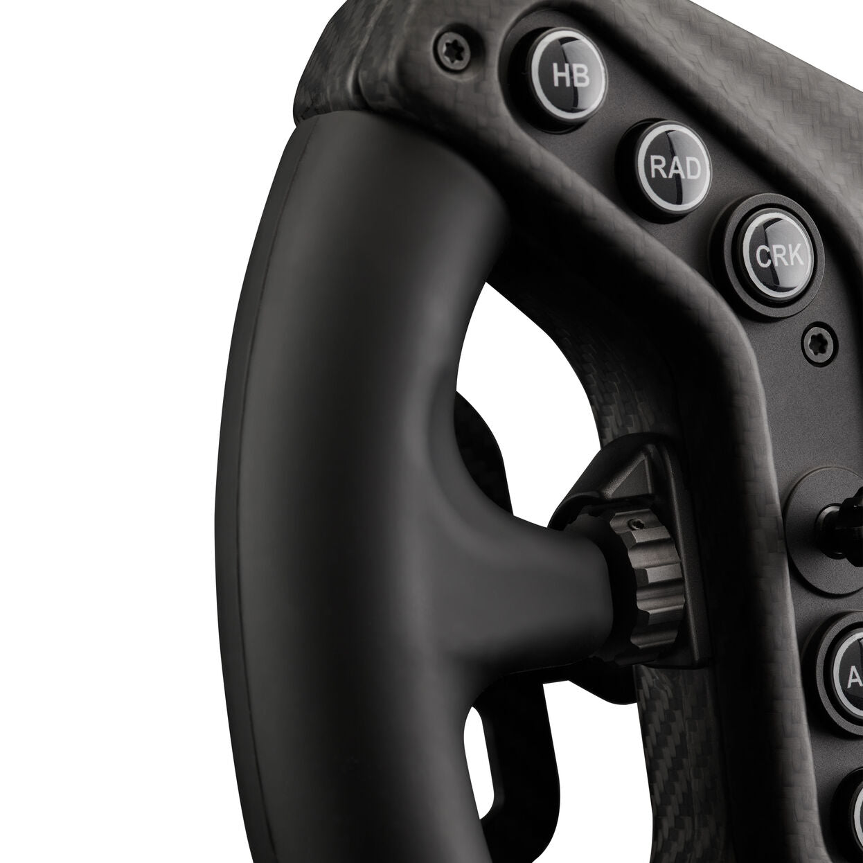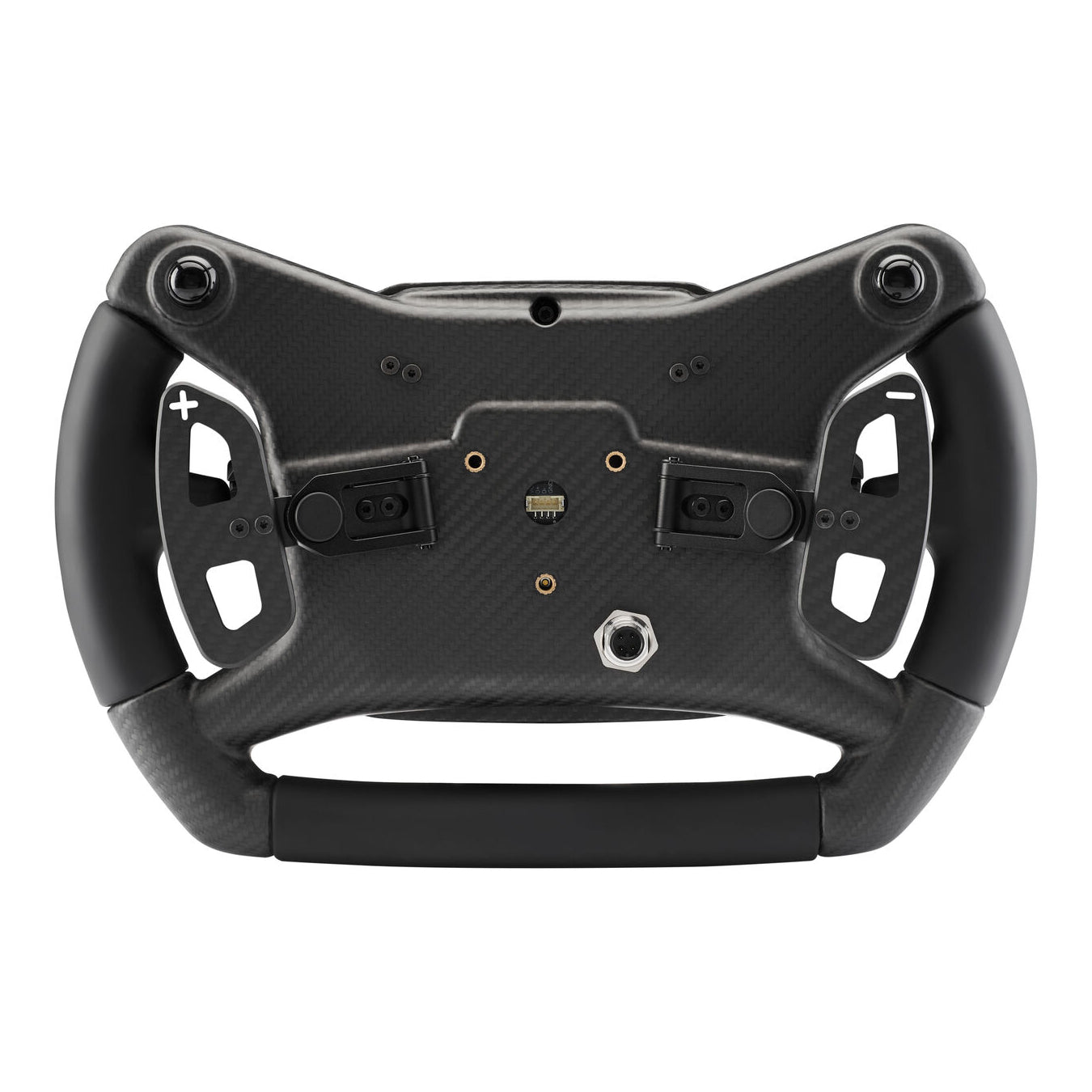 Das Gehäuse und die Frontplatte bestehen aus Motorsport-Carbon - hergestellt in derselben Fertigung wie das echte Cup Car-Lenkrad. Die hohe Steifigkeit sorgt für ein direktes Lenkgefühl ohne Verwindung in deinen Rennen.